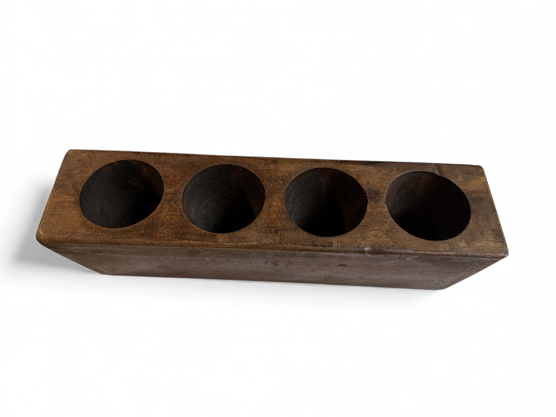 Crafted from wood, these pieces showcase natural characteristics such as minor cracks or knots that add to their authentic charm.