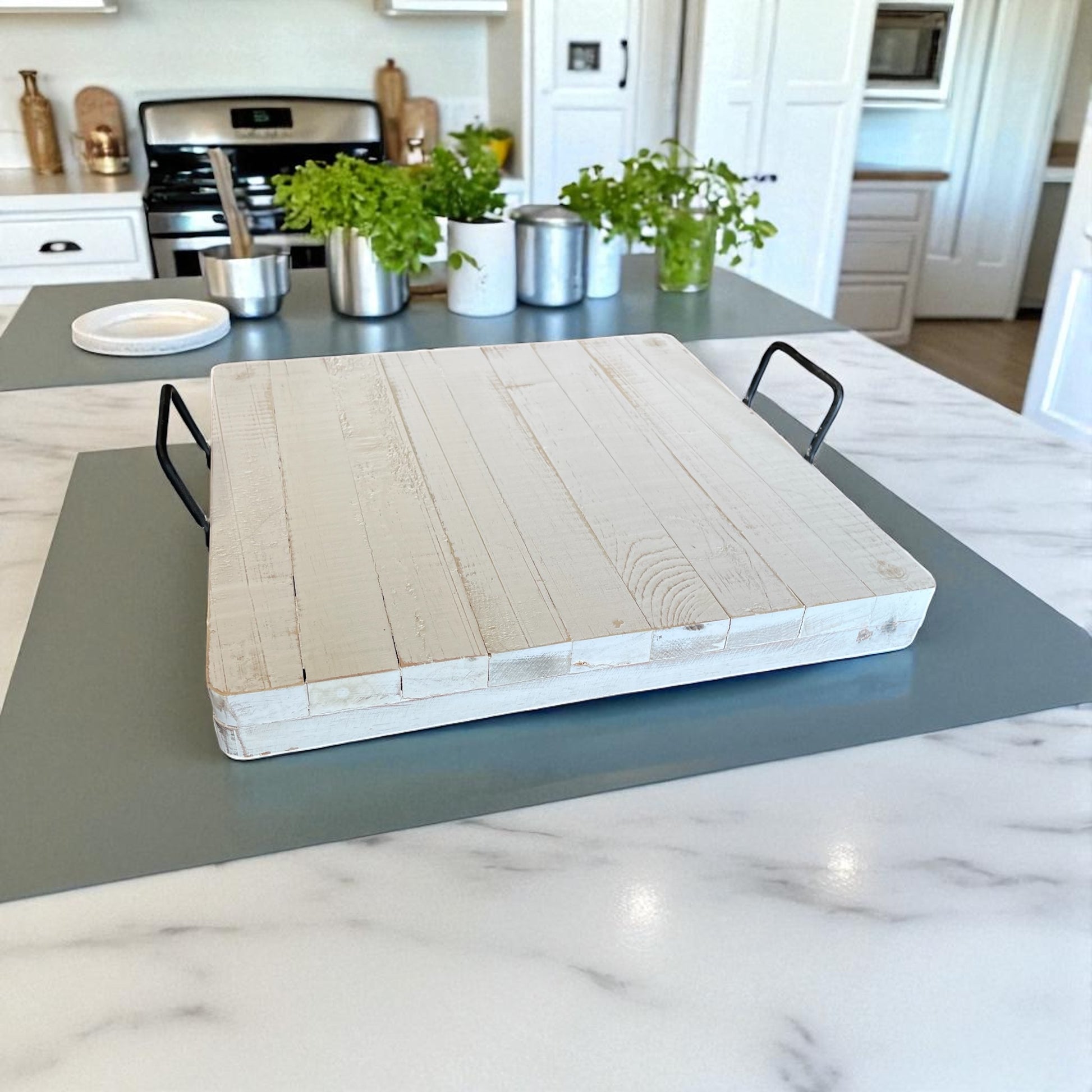 With a beautiful wood grain finish, the tray measures 16" x 16" x 2", perfect for entertaining or displaying items.